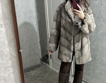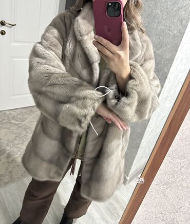 Шуба из норки, темный графит/черный бриз. Классический прямой крой до середины бедра, объемный капюшон. Рукав 3/4 с возможностью носить с длинными перчатками. Поперечная раскладка пластин, гладкий ...