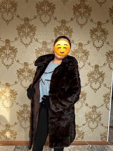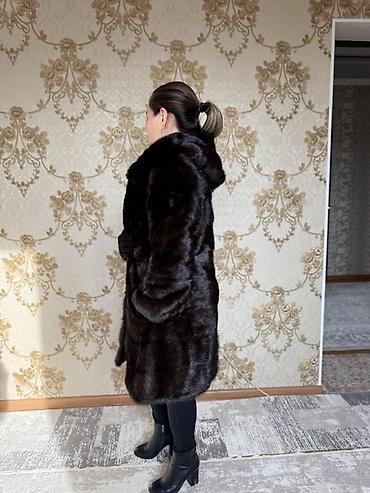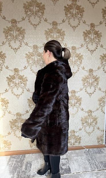 Шуба из норки, натуральный мех, цвет — темный шоколад.