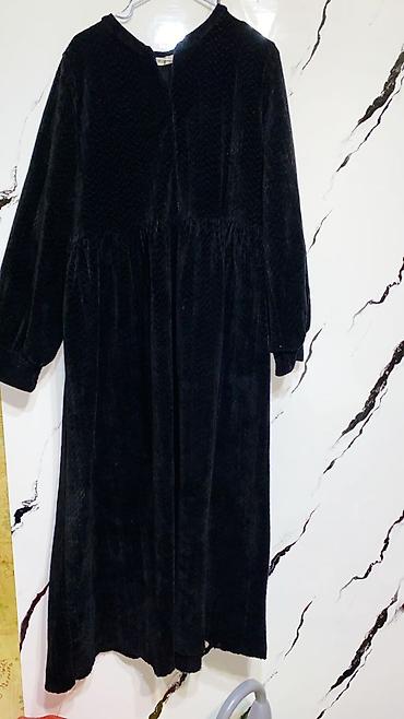 3) Платье-чёрное миди из бархатистой фактурной ткани с лёгким геометрическим рисунком. Длинные рукава на манжете, округлая горловина без воротника. Сборка по линии талии, расклёшённая юбка.