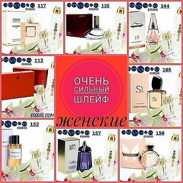 - Формат: парфюмированная вода во флаконах-спреях. На фото также представлена серия Essens Niche с фирменным флаконом.