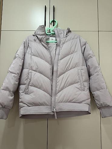 Пуховая куртка с капюшоном, светло-серая (холодный беж/айс-грей).