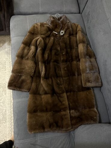 Шуба из темного меха (норка), женская Размер с/м - Цвет: темный шоколад с благородным блеском - Фасон: прямой силуэт, длина регулируется - Рукава: 3/4, можно добавить и удлинить. - Ворот: стойка ...