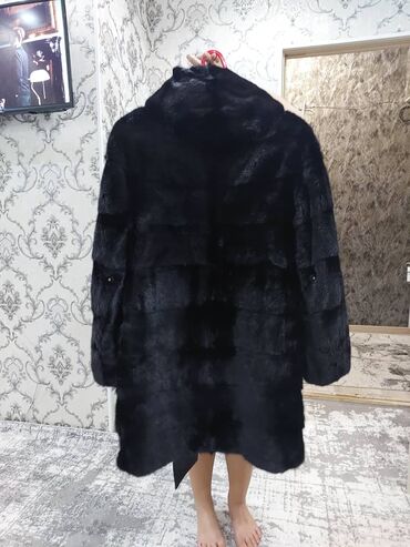 Подходит для повседневных образов и выхода, хорошо держит тепло, смотрится элегантно и дорого. Размер ориентировочно средний (визуально М–L); посадка свободная. Цвет универсальный глубокий черный.
