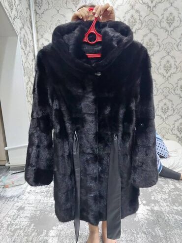 Шуба из натурального меха (визуально — норка) насыщенного черного цвета.