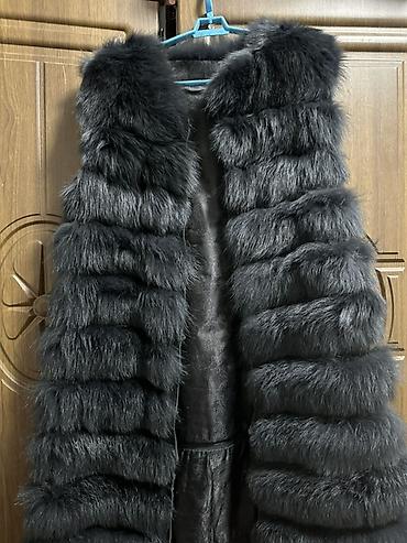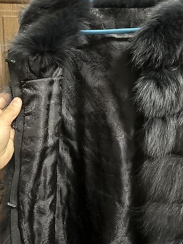 Шуба из натурального меха, классический прямой крой. Цвет: насыщенный тёмно‑коричневый/чёрный с благородным блеском. Длина до середины бедра, длинные рукава. Тёплый воротник‑стойка/полустойка, заст...