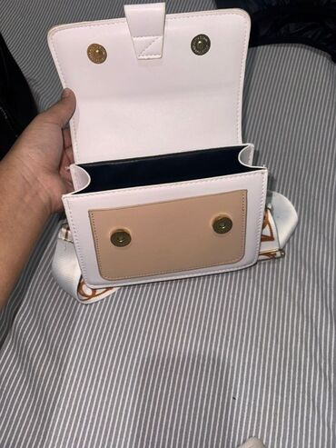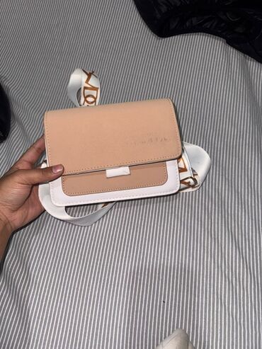 Женская сумка-кроссбоди - Цвет: бежевый с белыми вставками -