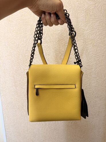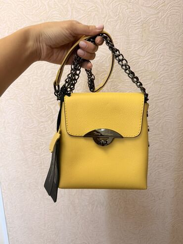 Компактная женская сумка-кроссбоди/мини-рюкзак в ярком жёлтом цвете. Натуральная кожа, производство Турция Итальянского бренда Tonybellycci. Совершенно новый ни разу не ношеное. г. Ош, самовывоз.