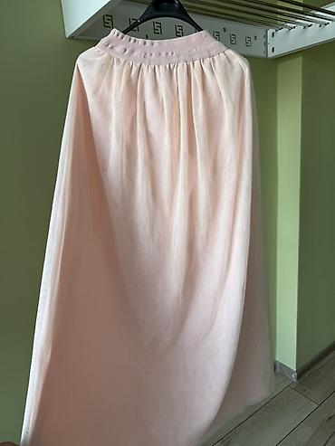 Длинная пышная юбка пастельно-розового цвета.