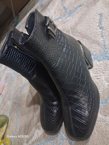 Женские черные ботинки/полусапоги на массивной подошве. - Материал