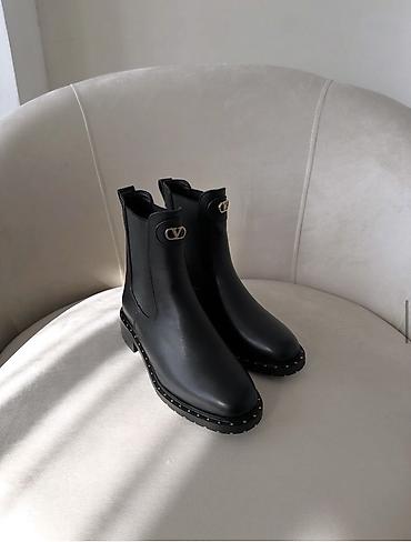 Женские челси из чёрной гладкой кожи. - Лаконичный силуэт с округлым