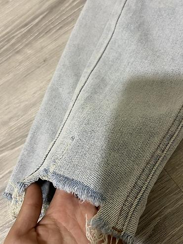 - Низ с необработанным краем и декоративными потертостями/надрезами по боковым швам