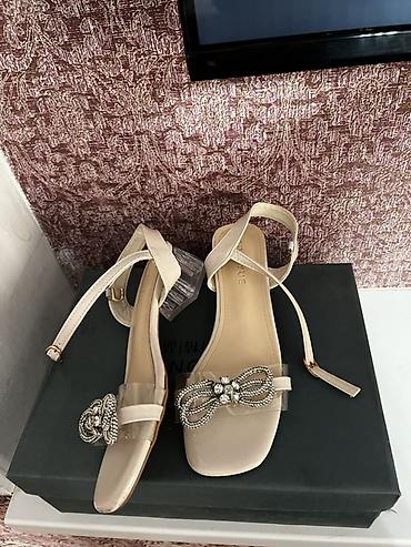 Элегантный акцент — крупный блестящий бант, который добавляет обуви праздничный вид, а прозрачный ремешок визуально «облегчает» ногу. Устойчивый низкий каблук обеспечивает удобство на каждый день. Размер на коробке не указан на фото. Срочно продаю!!!!