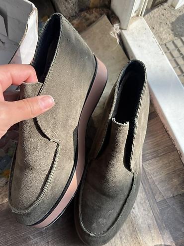 - Материал верха: мягкая замша оливково‑серого оттенка