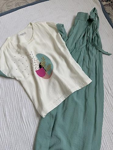 Женские вещи в очень хорошем состоянии практически новые Размер 44-46 Цена за всё 1000сом 1) Черно‑белый комплект с принтом свободная рубашка на пуговицах с воротником-стойкой и длинным рукавом +...