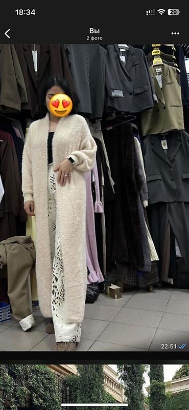 Теплый женский кардиган Кардиган: - Цвет: молочный/белый - Длина: миди, закрывает бедро - Фасон: свободный прямой крой, без пуговиц и молнии, с мягкой шалевой линией борта - Рукава: длинные, присбо...