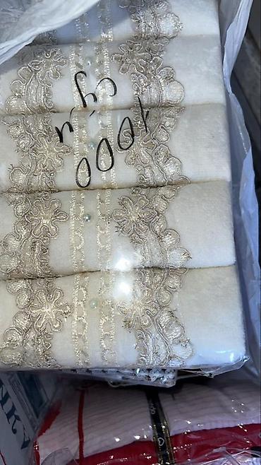 Дополнительно: на одном из фото — комплект махровых полотенец с кружевной отделкой и перламутровыми бусинами (нежно‑белый цвет). Если интересует подарочный набор текстиля в том же стиле — на фото видно вариант с декоративным кружевом.