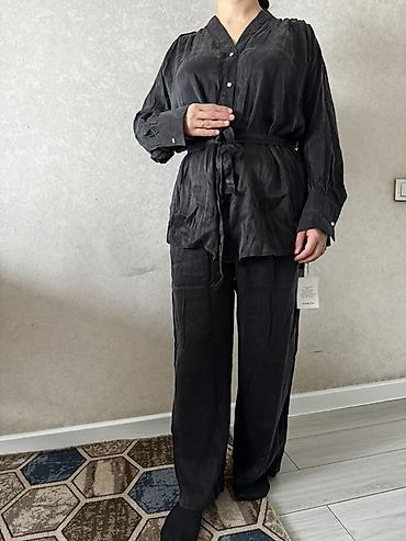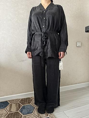 Женский комплект из струящейся ткани, цвет темно-серый/графит.