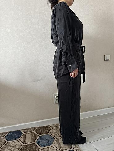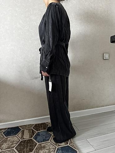 - Универсальный комплект: можно носить вместе как костюм или по отдельности — рубашку с джинсами/юбкой, брюки с топом или жакетом.