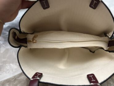 Обе сумки легко сочетаются с повседневными и деловыми образами: бежевый тоут — для работы и поездок, бордовая мини — для прогулок и вечера.
