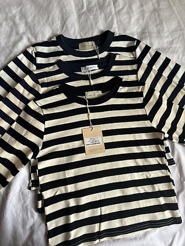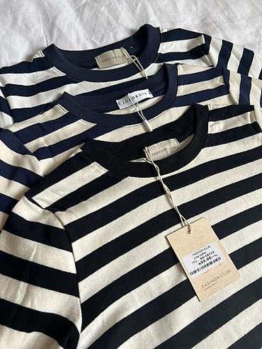 - Классические лонгсливы в горизонтальную полоску (черный/темно‑синий и молочный).