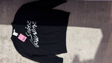 Черный вязаный свитер с контрастным белым логотипом “Saint Laurent” на груди. Особенности: - Прямой крой, длинный рукав. - Круглый ворот. - Эластичные манжеты и нижняя резинка для удобной пос...