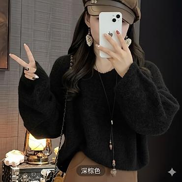 - Пушистый однотонный свитер в молочном и черном цветах — универсальная базовая модель для повседневных образов.