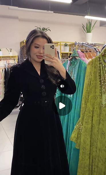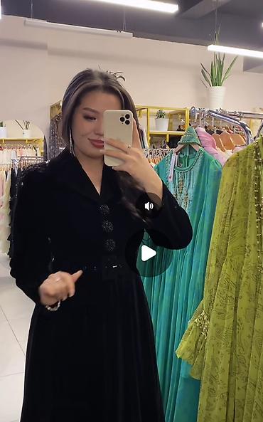 Вечернее платье, Коктейльное, Длинная модель, Велюр, С рукавами, M