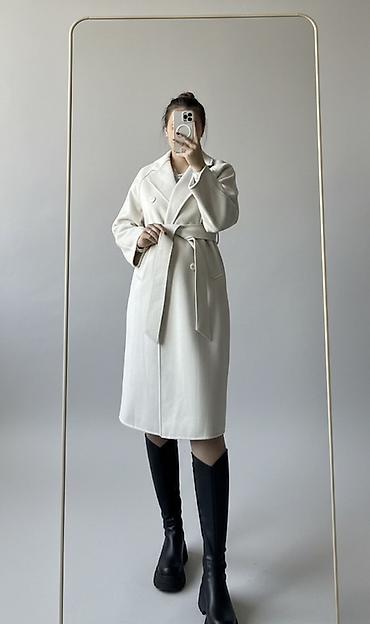 - Детали: два ряда пуговиц в тон, скрытые боковые карманы, поясные шлёвки, аккуратная отстрочка по бортам и воротнику.