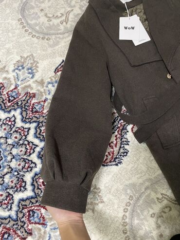 Двубортное женское полупальто/пальто-жакет WoW, темно-оливковый (глубокий коричнево-зеленый оттенок).