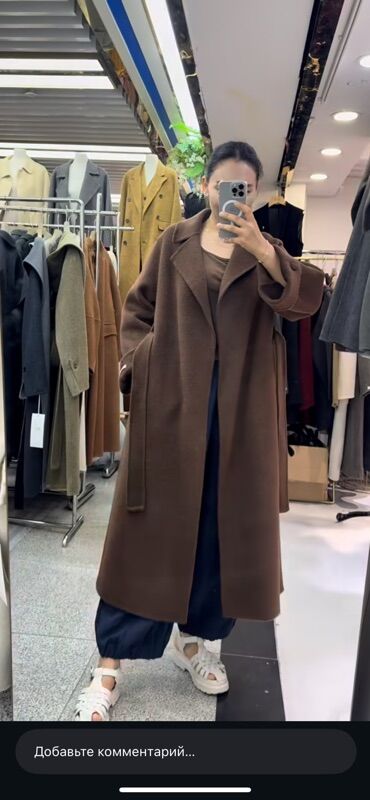 Пальто кимоно женское, длина миди, цвет шоколад.