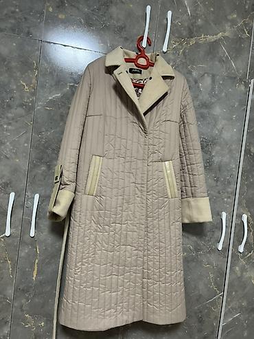 Уютное, легкое и теплое межсезонное пальто в универсальном нейтральном оттенке: сочетается с деловыми и повседневными образами, защищает от ветра за счет стежки и высокой посадки воротника. Бренд: AZRA.