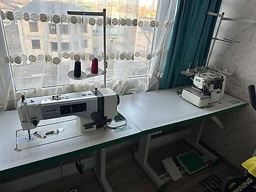 - Оверлок ZOJE на отдельном промышленном столе со стойкой на 4 катушки, педалями и приводом. Выполняет обметку краев, стачивание трикотажа и эластичных материалов, формирует ровный фабричный шов.