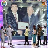 Белый мини-грузовик Hyundai Porter II, предназначенный для перевозки грузов. Модель имеет кабину на двух человек и открытую грузовую платформу. На кузове автомобиля присутствует логотип "LG". Автом...