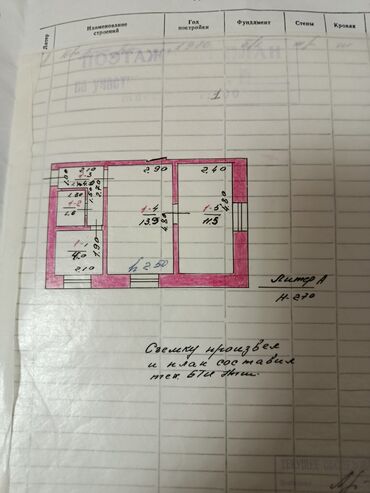 - Имеется технический паспорт единицы недвижимого имущества (Кыргызская Республика), экспликация и поэтажный план с размерами проемов и толщиной стен, указанные на схемах.