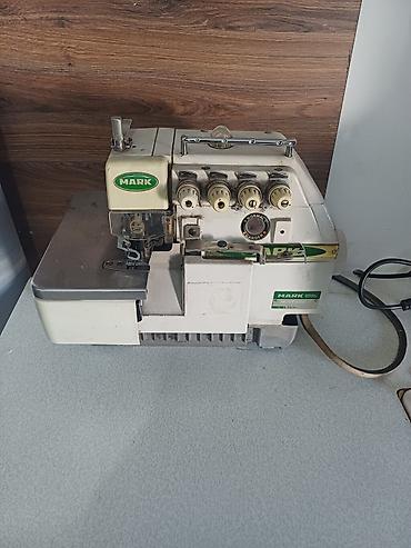 Промышленный оверлок MARK (модель на шильдике: MARK MX-75F-516M) на столе с промышленным электродвигателем.