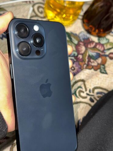 Комплектация по фото: смартфон и фирменная коробка. Цвет — темно‑синий. Размер и дизайн соответствуют серии iPhone Pro с тройной камерой и Dynamic Island.