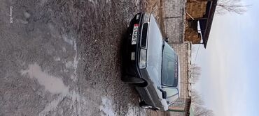 Седан среднего класса, 4 двери, серебристый цвет с черными акцентами (бампера/молдинги). Кузов с классическими ровными линиями 90‑х, тонированные задние фонари, черные стальные диски, резина всесезонная.