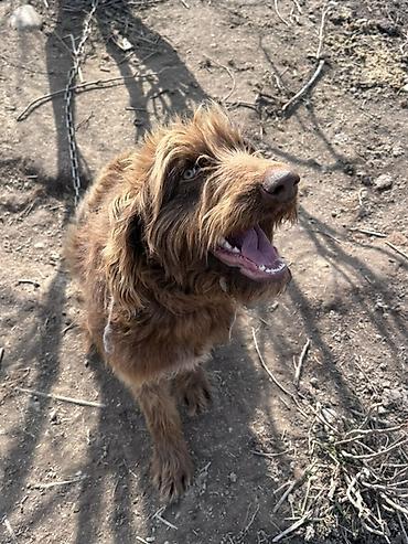 Бородатого терьера/лабродудля). Окрас: шоколадно-рыжий, шерсть