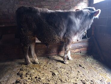 Бык чёрного окраса, рогатый, на привязи, содержится в отдельном стойле. Крупный, широкая спина и грудь, крепкий костяк, ровные конечности. Кожа и шерсть тёмные, плотные. Уши с бирками. Спокойный ха...