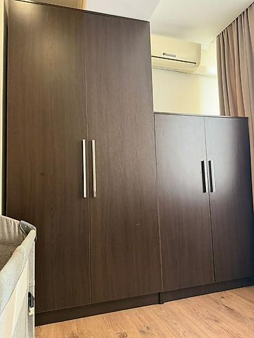 - Два больших платяных шкафа с распашными дверями и длинными металлическими ручками.