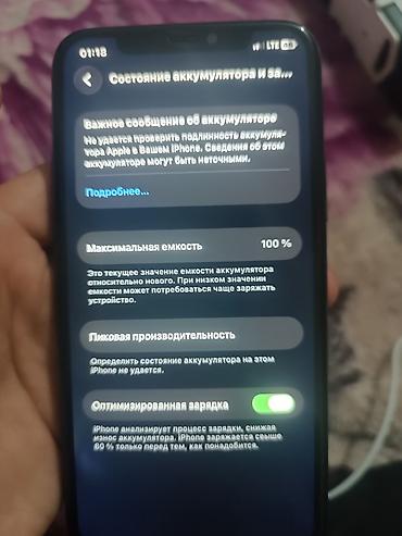 - Аккумулятор: в разделе «Состояние аккумулятора» отображается «Максимальная емкость 100%»; присутствует сообщение о невозможности проверить подлинность аккумулятора