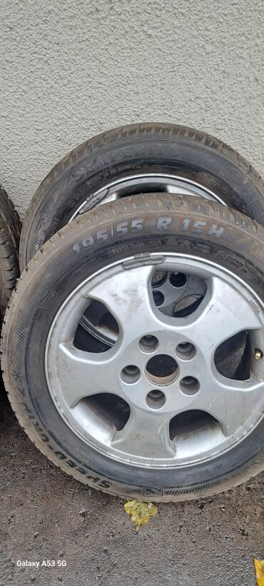 Комплект из 4 колес в сборе: шины + литые диски. - Диаметр дисков визуально около R15–R16, 5-спицевые, 5 отверстий под крепеж. - Резина летняя, протектор дорожного типа. - Посадочное число отверст...