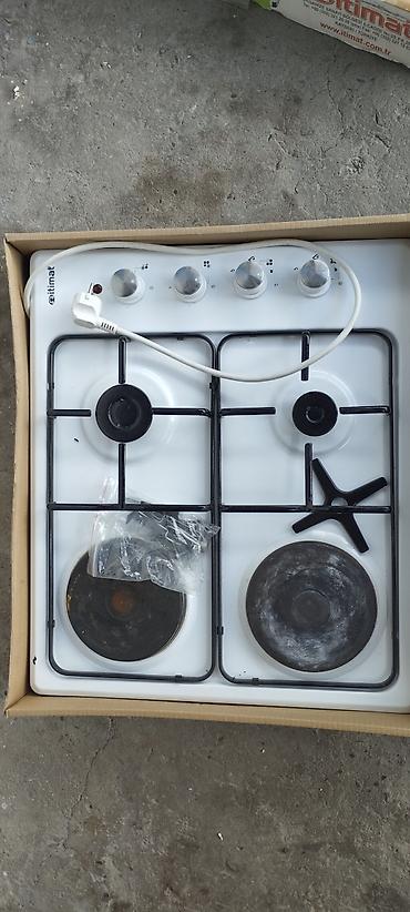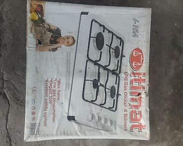 - 2 газовые горелки + 2 электрические конфорки (чугунные “блины”).