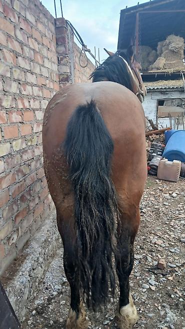 жеребец 9 лет.мать чистокровная Английской породы. отец чистокровно Английской породы полутяж (Шаир).продаю или меняю(сельскохозяйственный скот.) за дополнительной информацией звоните по телефону