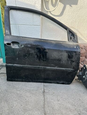 Левая передняя дверь в сборе для автомобиля. Особенности: - Тип: передняя левая (FL) - Цвет: чёрный - Стекло установлено - Имеются петли и каркас под зеркало, ручка снаружи на месте - Подходит для...