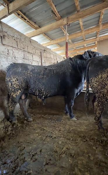 Бык черной масти, крепкого телосложения, предназначенный для разведения или мясного производства. Животное отличается крупными размерами и характерной мускулатурой. Присутствует красная уздечка. Подходит для фермерских хозяйств, заинтересованных в пополнении стада или увеличении мясной продуктивности.