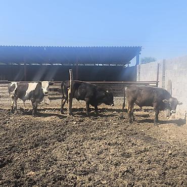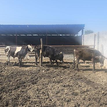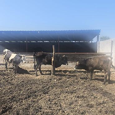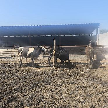 - В продаже молодняк КРС: на фото 3 бычка разной масти (черно‑пестрый, черный, бурый).