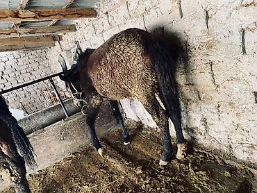 - Масть темная (гнедо-вороная), густая зимняя шерсть.