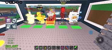 - У каждого генератора указана скорость фарма и стоимость апгрейдов на табличках над платформами (до десятков/сотен миллионов в секунду).
