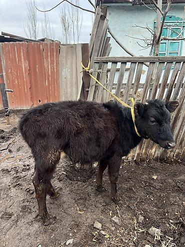 Теленок (молочный возраст) эркек музоо сатылат парода атасы шведский энеси Головей - Молодой теленок темно‑бурого окраса, активный, на крепких ногах. - Содержится в индивидуальной клетке в закрытом...